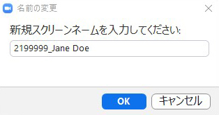 配信サービスで設定する名前(表示名)は、「自身の会員番号(7桁)_名前」を設定してください。修了証を発行する際に必要になります。誤った入力をしてしまった場合や入力を忘れてしまった場合は、再入室の上、正しい会員番号を設定ください(修了証が用意されないコースもあります)。